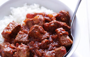 Beef cocinado con lentejas al estilo hindú, agridulce y picante.