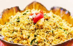 Este es un platillo preparado con arroz y variadas especias de la India sin ningún tipo de salsa.